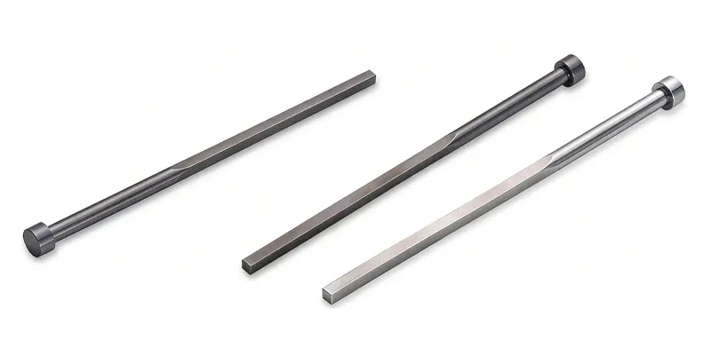 The special shaped ejector pin improves molding flexibility and efficiency by enabling precise ejection of complex or irregularly shaped plastic parts, reducing product deformation and cycle interruptions. Compared with standard ejector pins, it provides better customization adaptability, higher durability, and more stable performance in demanding production environments. This component is widely used in automotive interiors, electronics housings, medical devices, and precision plastic molding industries where complex part geometry, high accuracy, and consistent production quality are required.