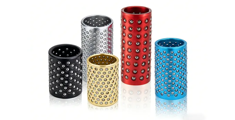 The copper ball bushings use H62 brass material, while the aluminum ball bushings are made from 6061 aluminum alloy. Both are reinforced for enhanced corrosion resistance and wear resistance.